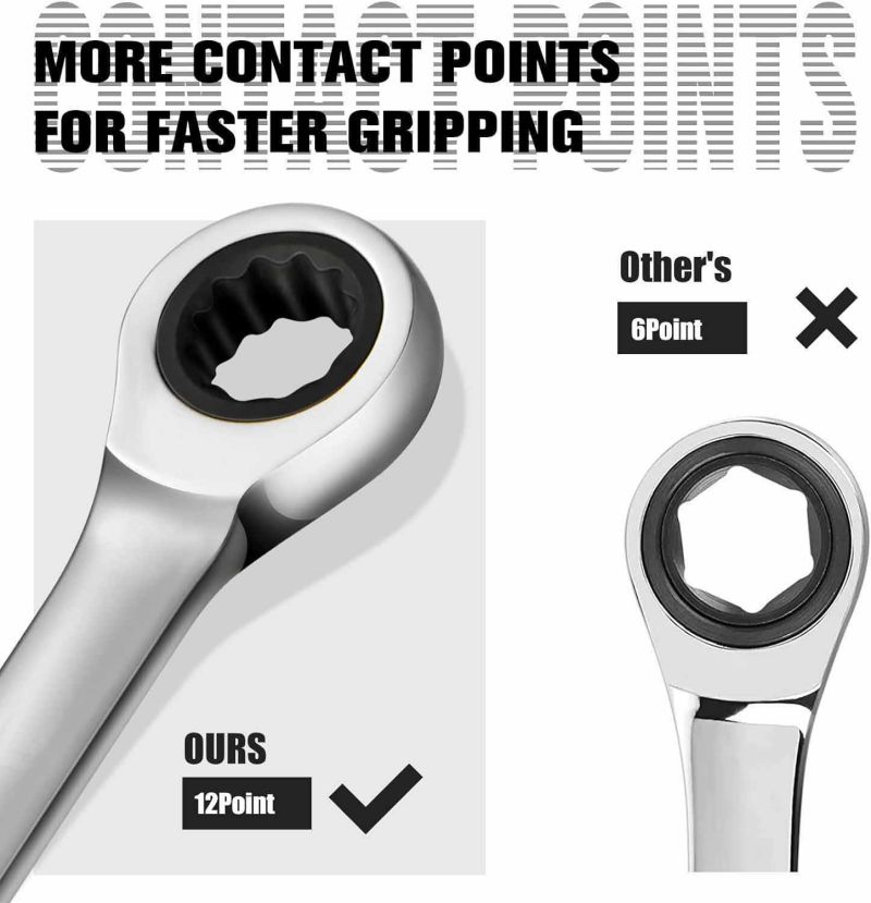 Bộ cờ lê bánh cóc theo hệ mét có xuất xứ từ Châu Á chỉ cần nghiêng 5 độ, một vòng cung xoay đáng kinh ngạc để tiếp cận tốt hơn trong không gian chật hẹp. Nó có thể cải thiện hiệu quả công việc của bạn mà không cần nâng nó thường xuyên.